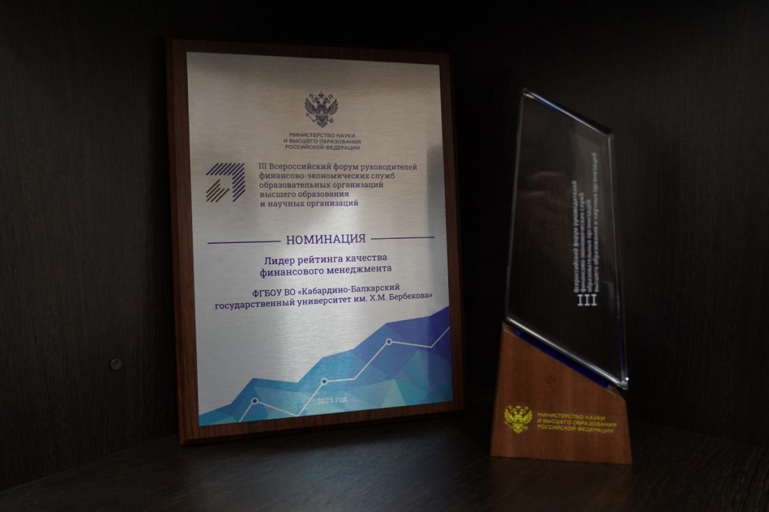 Диплом победителя из рук заместителя министра науки и высшего образования Андрея Омельчука получил проректор по экономике и стратегическому развитию КБГУ Аслан Пшигошев. Ранее университет уже становился обладателем этой награды в 2023 и 2024 годах, подтверждая свой статус одного из лучших в сфере финансового управления.