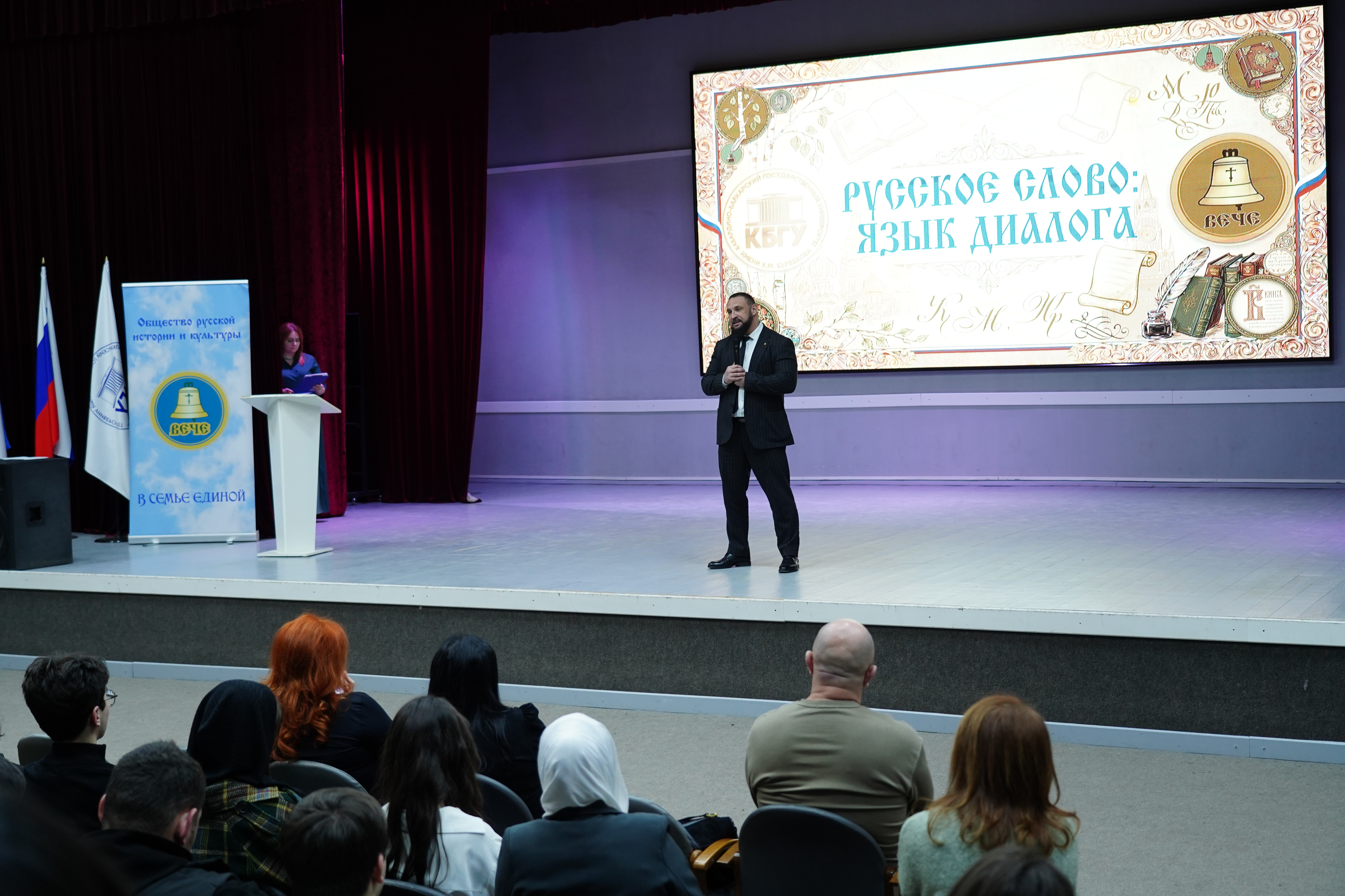 В Кабардино-Балкарском государственном университете имени Х. М. Бербекова состоялся круглый стол «Русское слово – язык диалога», организованный в рамках долгосрочного сотрудничества с обществом русской истории и культуры «Вече». Мероприятие было посвящено актуальным вопросам сохранения и укрепления позиций русского языка в современном обществе, особенно в контексте единства народов России.