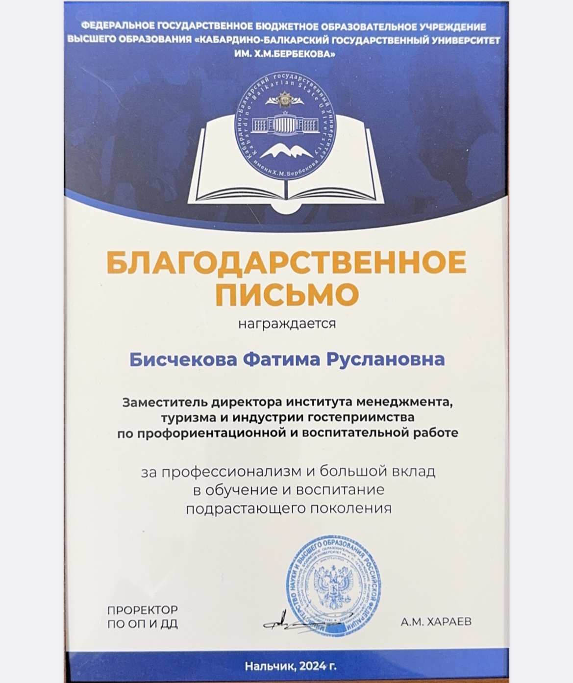 Дикинов Андзор ХасанбиевичД.э.н., профессор института менеджмента, туризма и индустрии гостеприимства. Директор Кабардино-Балкарского филиала Российского общества «Знание».