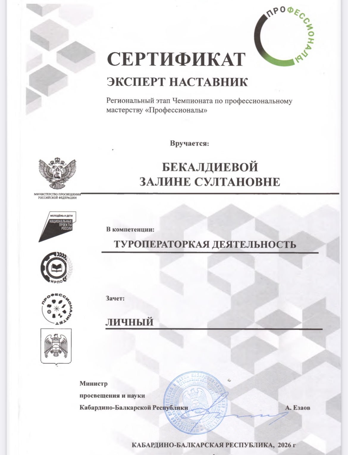 Бекалдиева Залина СултановнаСтарший преподаватель института менеджмента, туризма и индустрии гостеприимства.
