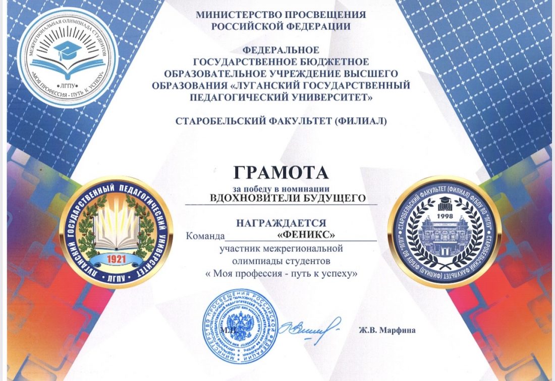 - Студенческая команда ИППиФСО «Феникс» одержала победу в І Межрегиональной олимпиаде студентов «Моя профессия – путь к успеху», организованной ЛГПУ